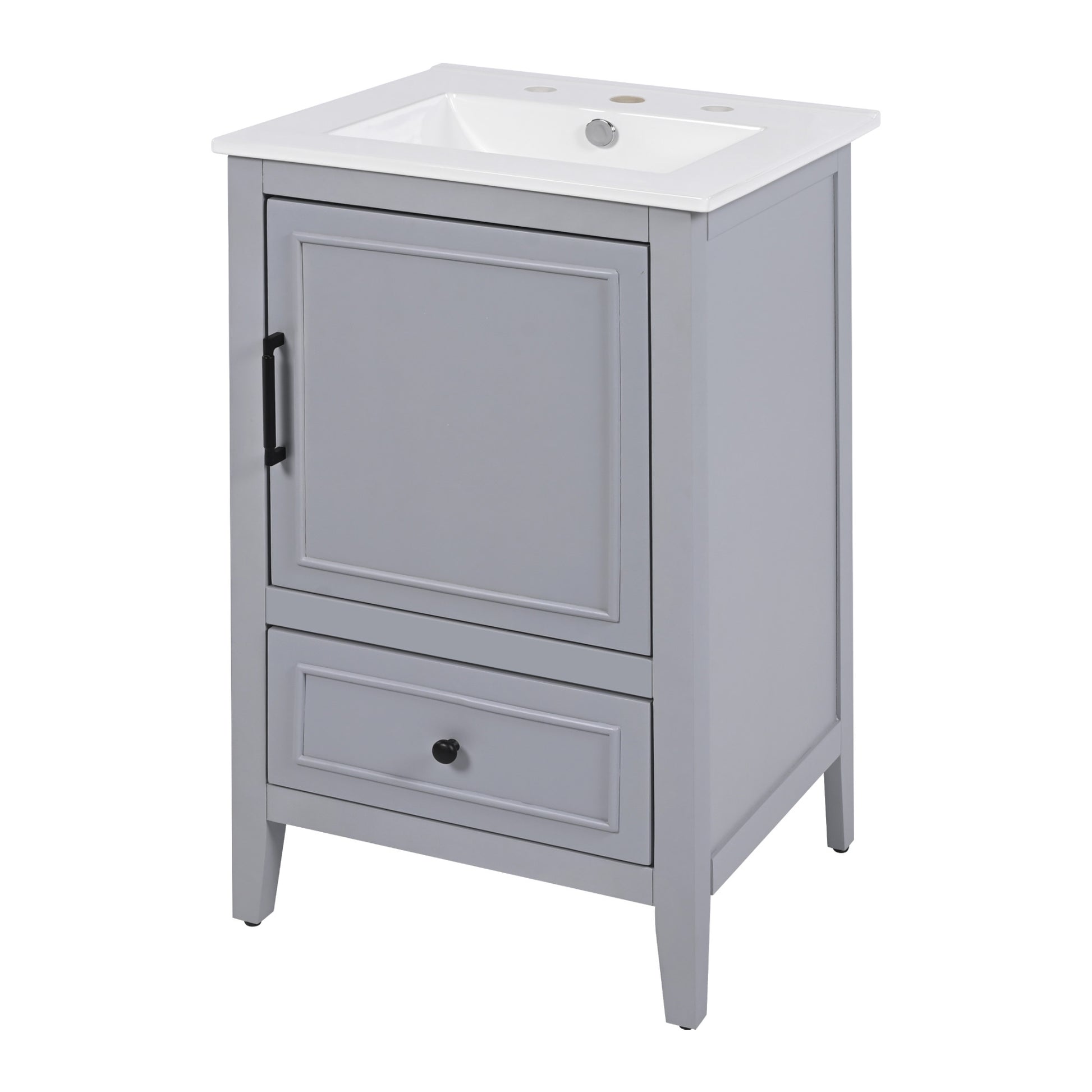 20' Bathroom Vanity with Sink, Bathroom Cabinet with A Door, Door Shelf Storage and Adiustable Foot Pads, A Drawer, Grey
